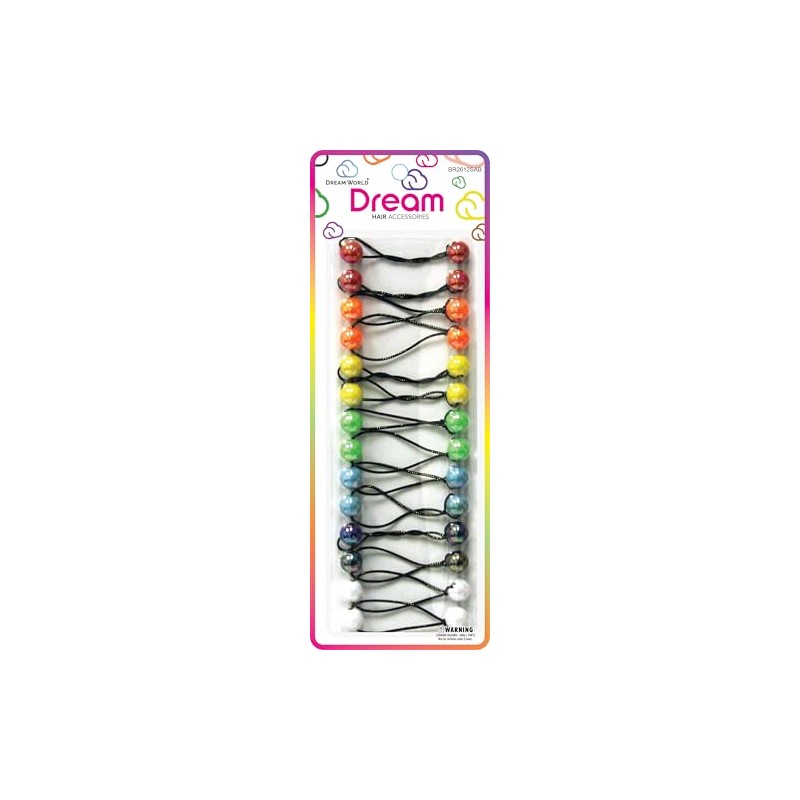 Dream World Ponytail Holder 12 MM Bead Solid Aurora Borealis 14 Piece Pack