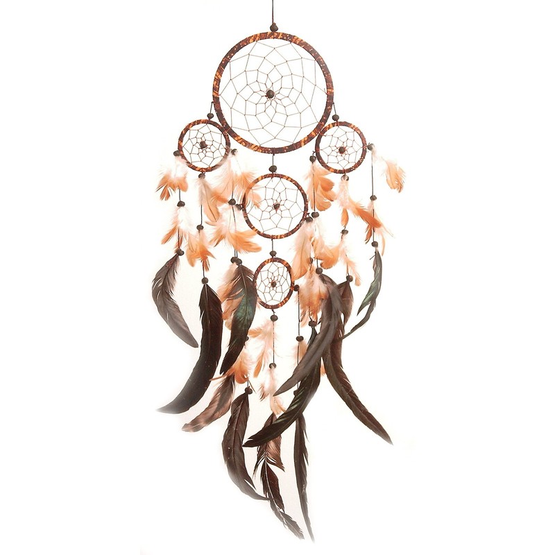 - Classic earth tones in brown and black with real feathers and clay balls