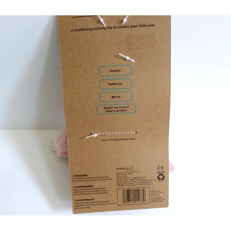 Dreamgro Fuzzy Pink Elephant Activity Buddy Plush Mirror Rattle Crinkle Teether