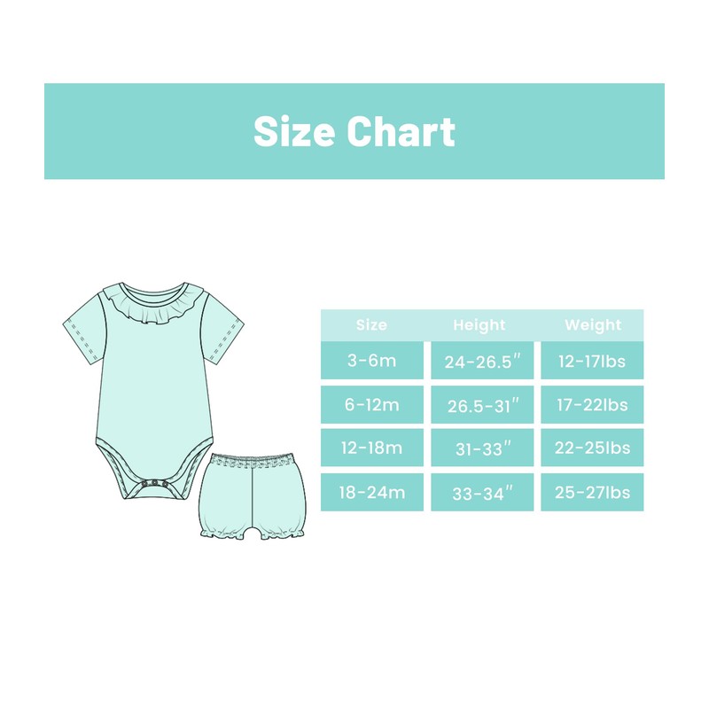 - 2 Piece Outfit Set: The bodysuit features a cute ruffle crew neckline collar, adding a touch of cute and style to your little one's outfit, paired with loose short pants. The short sleeve bodysuit has 3 buttons at the crotch making for quick and easy diaper changes.