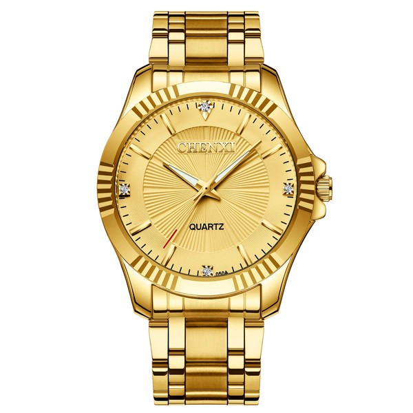 - Gold color coated by IP plating,rhinestones hour-markers,show gentleman taste;Case diameter:4cm,Length:21cm