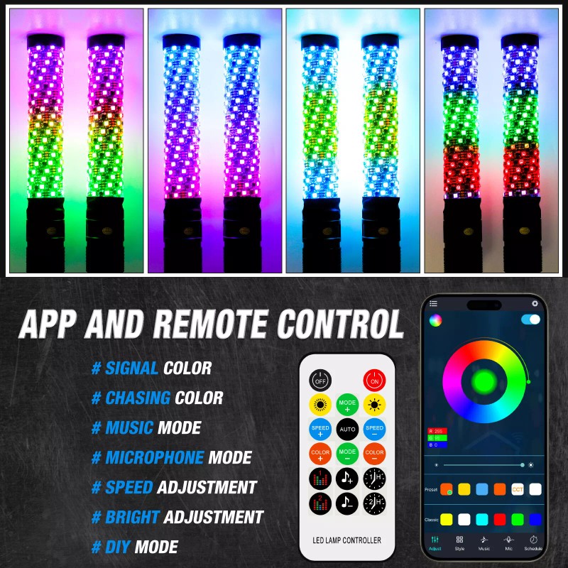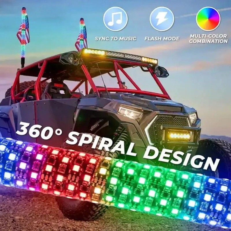 DREAMIZER 1 FTT ATV Fat Whips Thick Spiral Chasing RGB Whip Lights For Honda Talon Pioneer