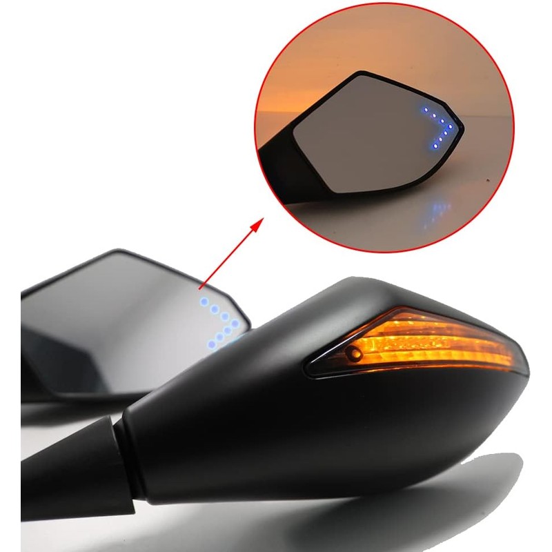 Packed Included: 2 pcs Integrated Motorcycle Turn Singal Anti-Glare Side Mirrors ( Left and Right)