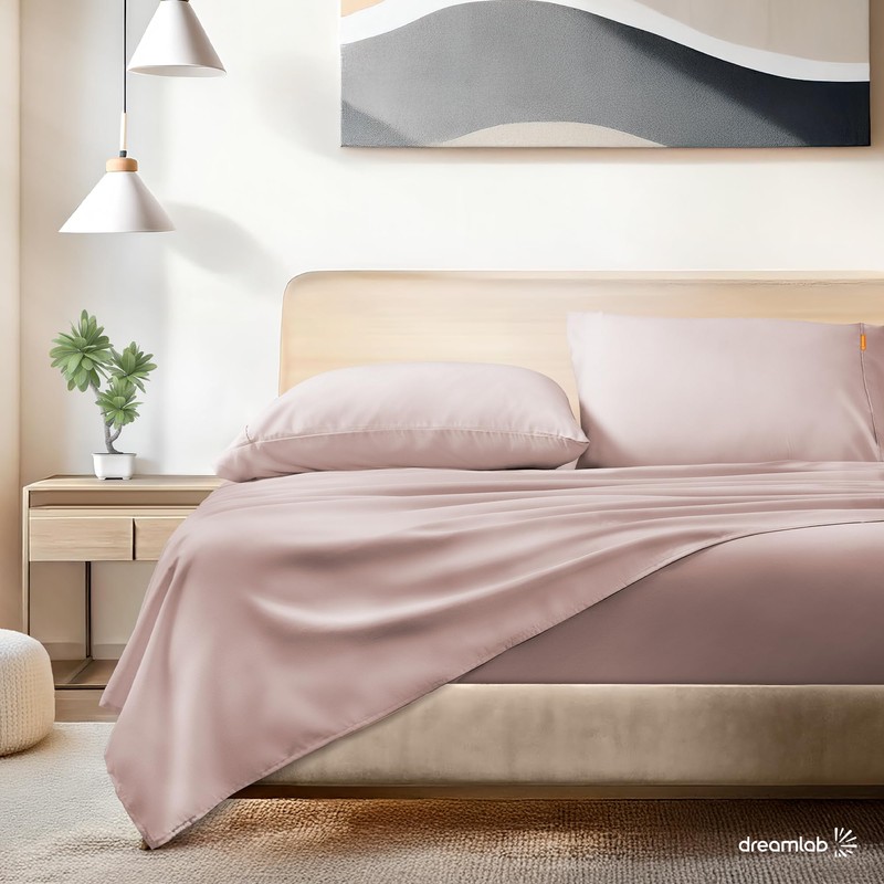 Dreamlab Juego de Sábanas Premier 1800 Collection. Sábanas de Microfibra de Lujo de Doble Cepillado (Rosa, Individual)