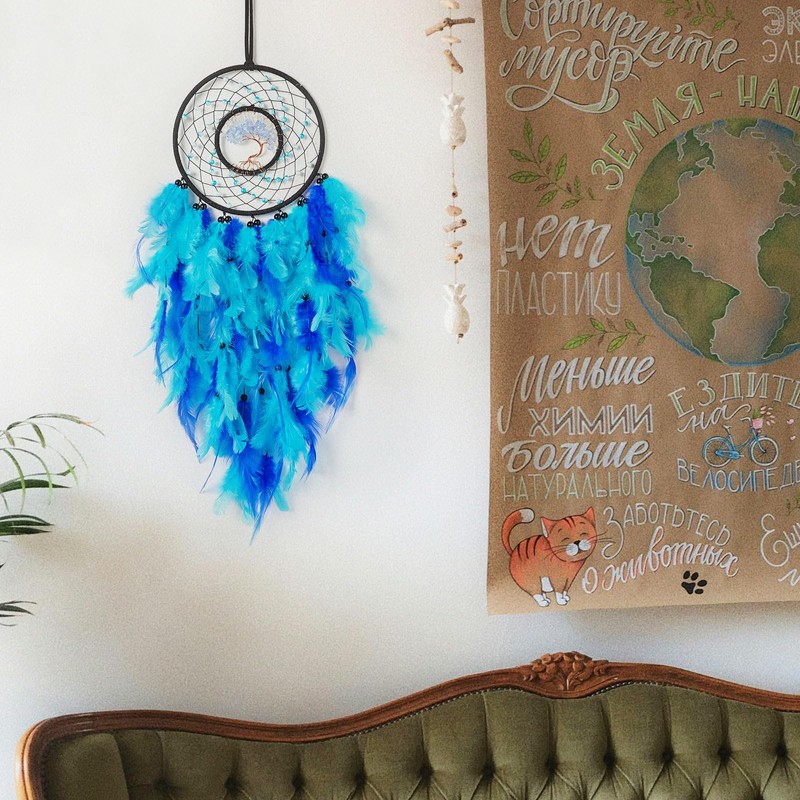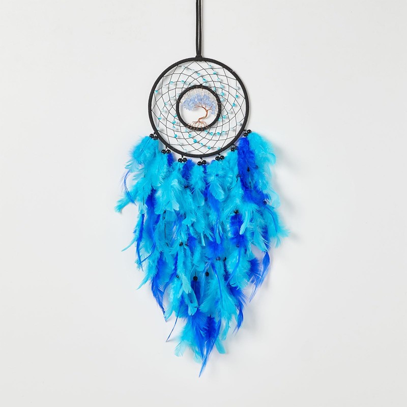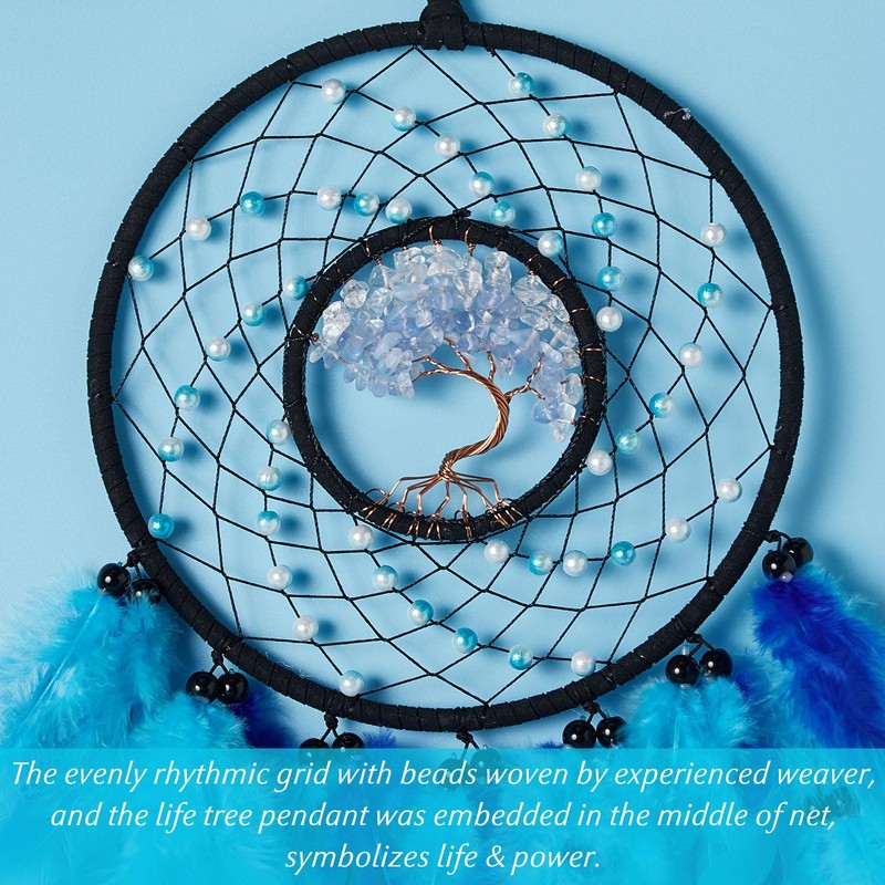 - 【Original Design】:This dream catcher blue decorated with white fumigated feathers strung with beads,creates a sweet and dreamy feeling.The life tree pendant with crystals stones was embedded in the middle of net,symbolizes life and power