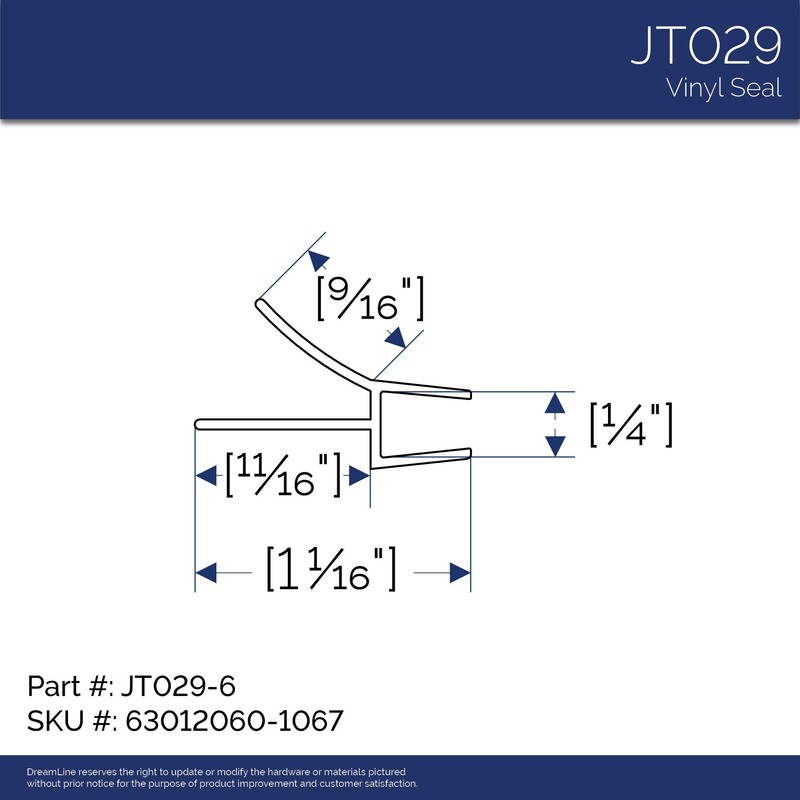 DreamLine Clear Bottom Vinyl Sweep with a Deflector 42" Length, JT029-6, for 6 Glass Shower Door, 63012060-1067, 42.01 In. L