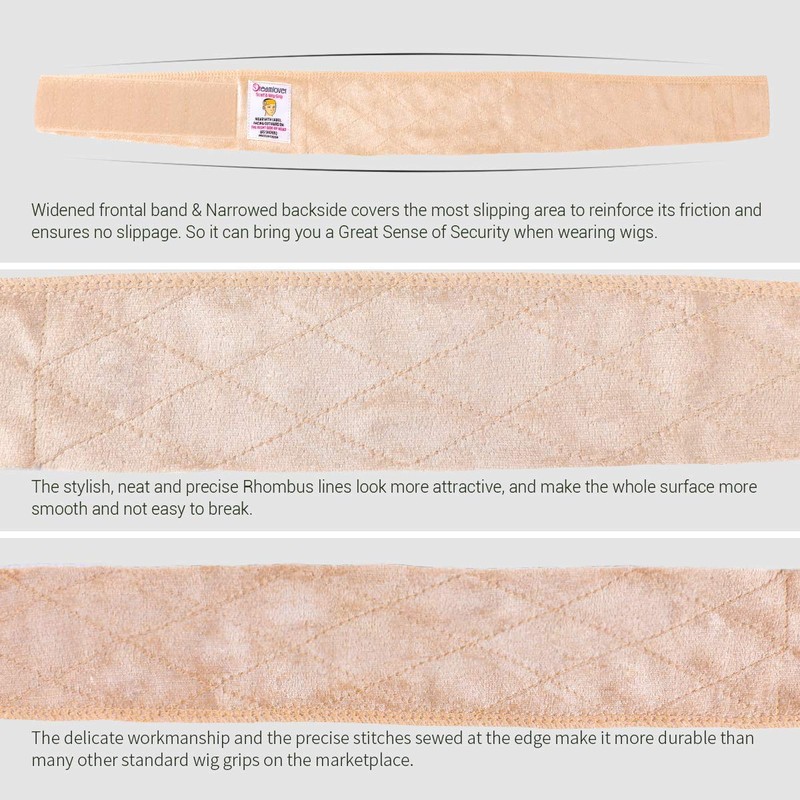 - A row of precise stitches sewed on the top ensures durable use. Stylish and neat rhombus lines make the wig grip headband more attractive