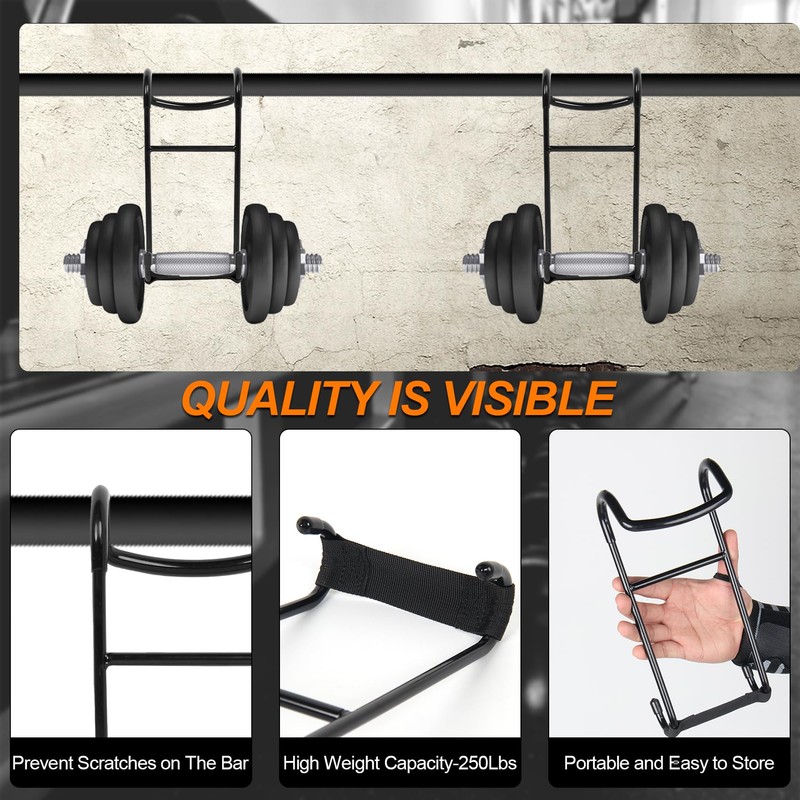 - 【Long-Term Durability - Built to last, these dumbbell spotter hooks are made from heavy-duty iron, capable of supporting up to 250 lbs (110 kg). The hooks are coated with a special anti-slip technology to resist rust, fading, and wear, ensuring long-term durability and reliable performance through countless workouts