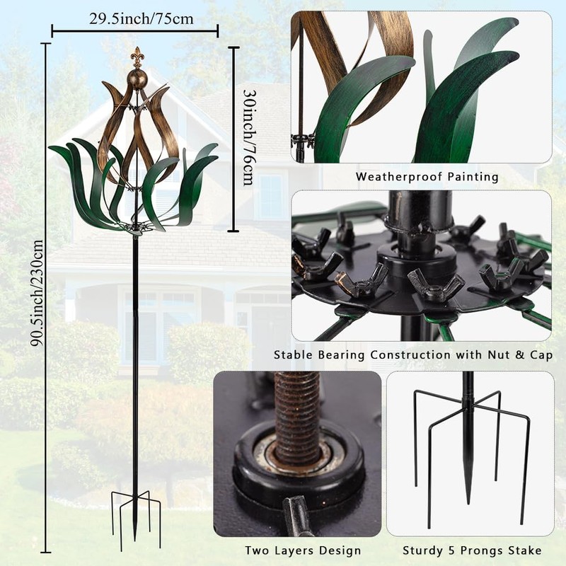 - Versatile Decor & Present: With the large size,the garden spinners are undoubtedly the most eye-catching decoration in garden. The wind spinners for yard also can be a surprising present, conveying your blessing to family and friends.