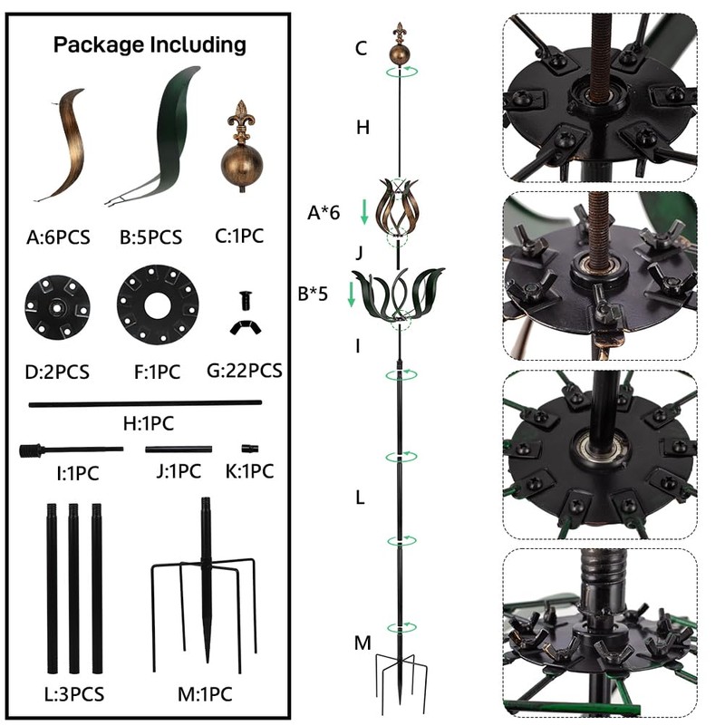 - Easy to Install: The wind spinners for yard and garden come with an instructions. Please check the garden spinners outdoor parts upon receipt. If you have any problem during the installation, please feel free to ask us and we will do our best to help you