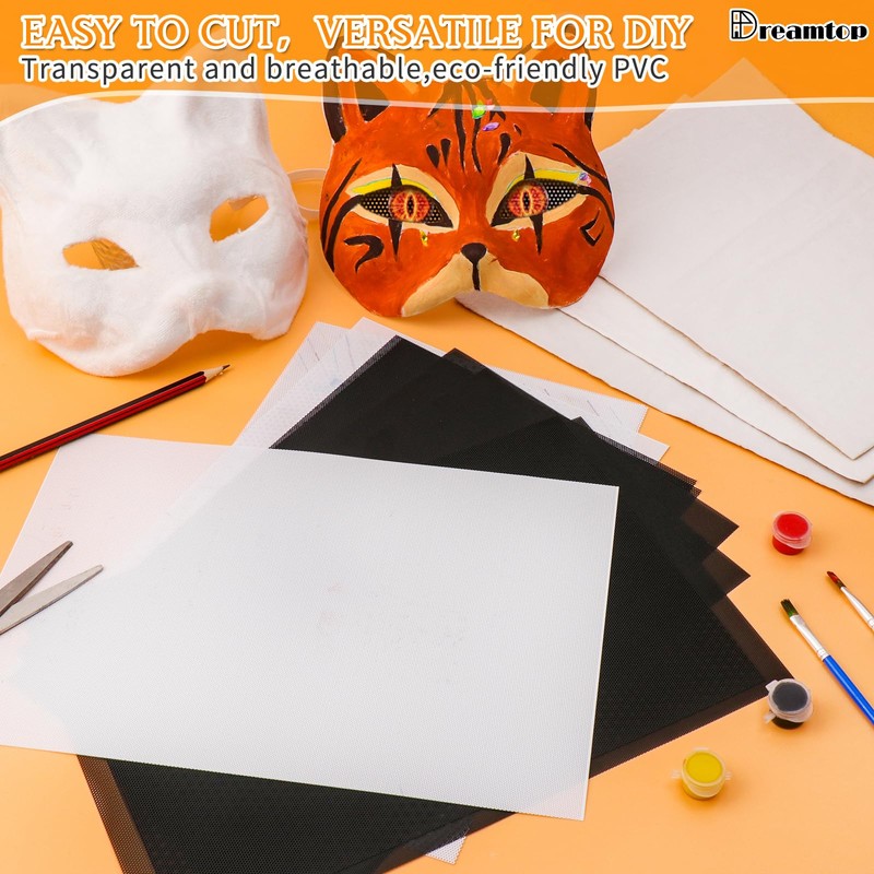 Dreamtop 10Pcs Fursuit Eye Mesh Therian Eye mesh Waterproof Printable PVC Plastic Cosplay Mesh Canvas and 3Pcs Felt Sheets for Therian Cat Mask Fursuits Props Handicrafts(11.81x7.87", White & Black)