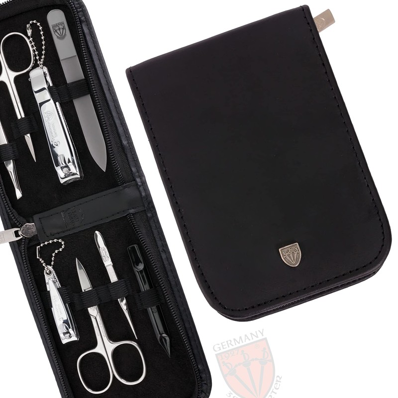 - Steel frame nail jewellery: first-class tested three sword brand quality since 1927, shiny nickel-plated and polished. Made in Solingen (except nail clippers). Our precisely forged scissors and pliers made in Germany are genuine screwed and meet the highest standards. Extensive quality controls guarantee a long service life of the nail set.