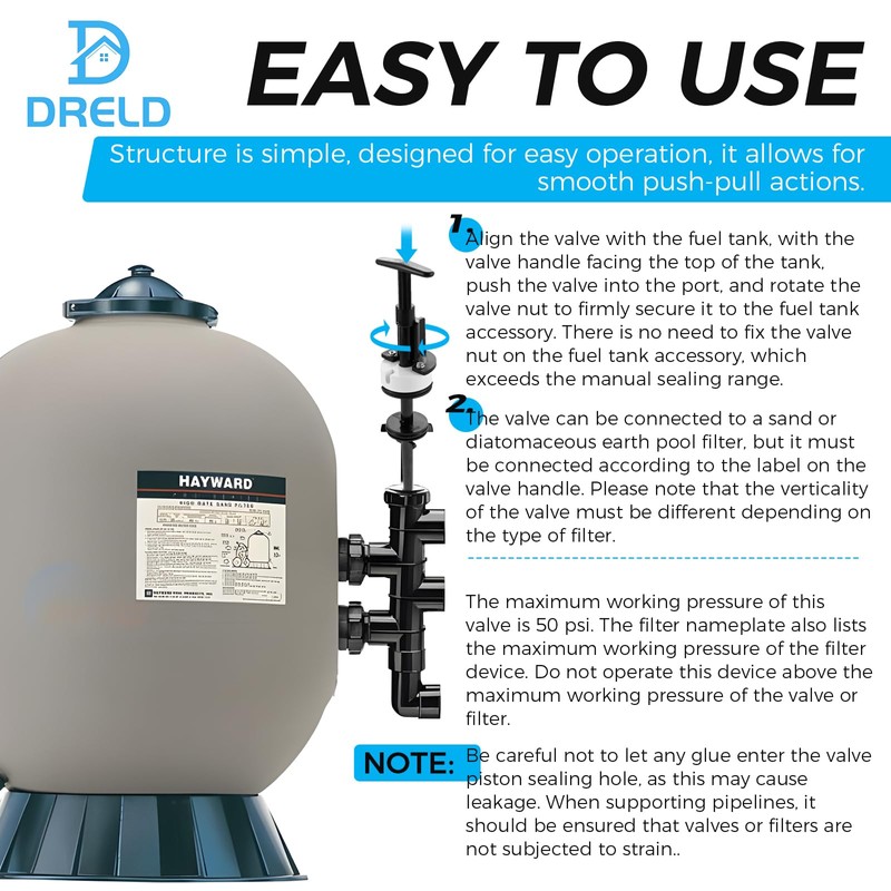 DRELD 273241 Piston Rod Assembly Replace 261047 261165, Replacement for Pentair Pool and Spa Multiport Valve Push-Pull Slide Backwash Valve