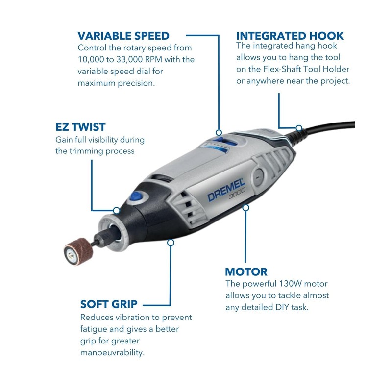 Dremel Dremel 3000 Rotary Tool 130 W, Multi Tool Kit with 15 Accessories, Variable Speed 10.000-33.000 RPM