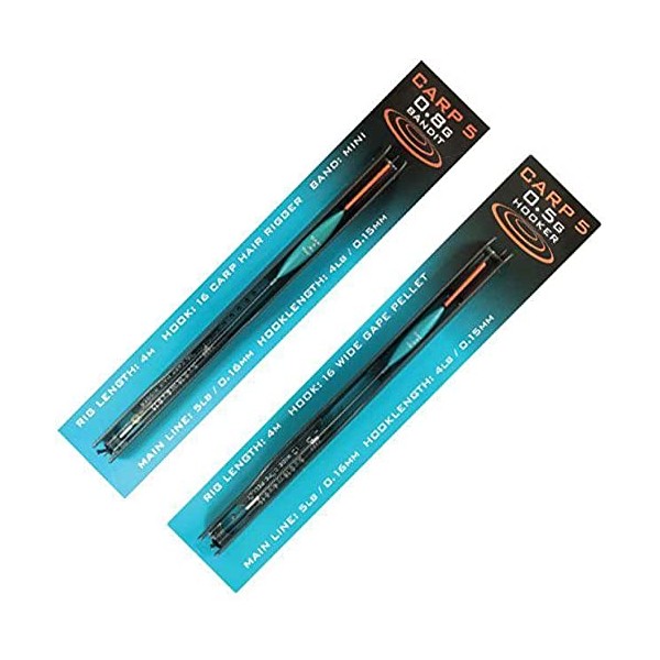 The rigs are available in sizes ranging from .2g to .8g and come in both Hooker and Bandit versions. The Hooker versions use a Wide Gape Pellet hook which is ideal for maggot, caster, worm, corn, and expander pellets. The Bandit versions are tied with a Carp Hair Rigger hook and have a mini bait band for attaching a variety of baits.