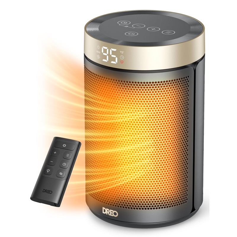 - Powerful heat that fits everywhere: Dreo space heaters for indoor combines Hyperamics 1500W advanced PTC system with a new heat funnel design to deliver heat within seconds and enhance warm air circulation for up to 200% farther reach than traditional heaters.