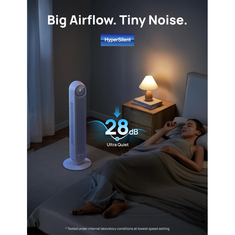 Dreo Tower Fan for Bedroom, 25ft/s Smart Standing Fans, 90° Oscillating Floor Fan with 4 Modes, 4 Speeds, 8H Timer, 28dB, Bladeless, Remote, 28 dB, Works with WiFi Voice Control