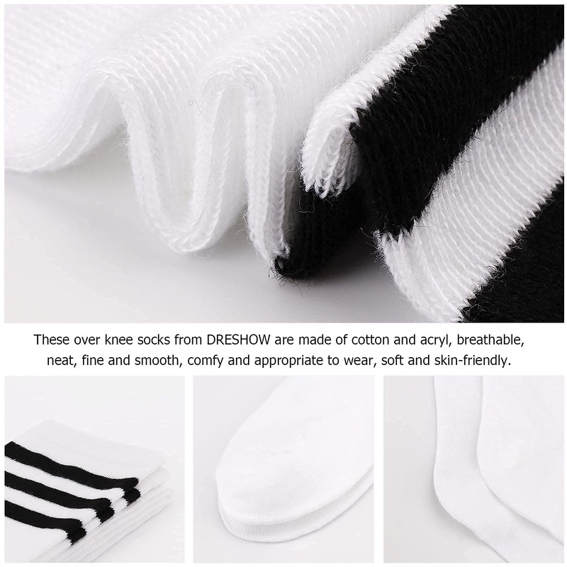 DRESHOW 2 Pairs Extra Long High Thigh Socks Striped Over Knee Thin Tights Lon...