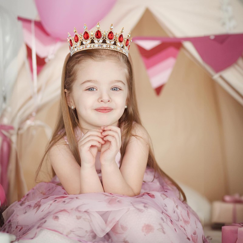 | Color: | 1 Pack Rhinestone Crown: Rose Gold Rainbow & Dark Red |