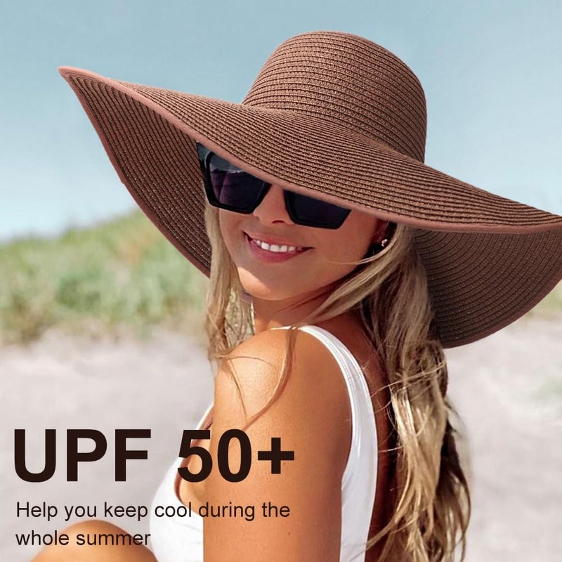 DRESHOW Sun Hats for Women Wide Brim Summer Hat Large Floppy Sun Straw Hat Foldable Packable Beach Hats UPF 50+