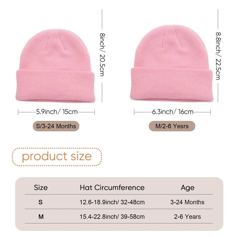 - Size Selection This kids hat comes in two sizes, suitable for babies and children. The small size is suitable for babies aged 3-24 months, while the medium size is suitable for children aged 2-6 years. This winter hat has good flexibility and stretchability. It is elastic, but not loose, and can stretch as children grow.