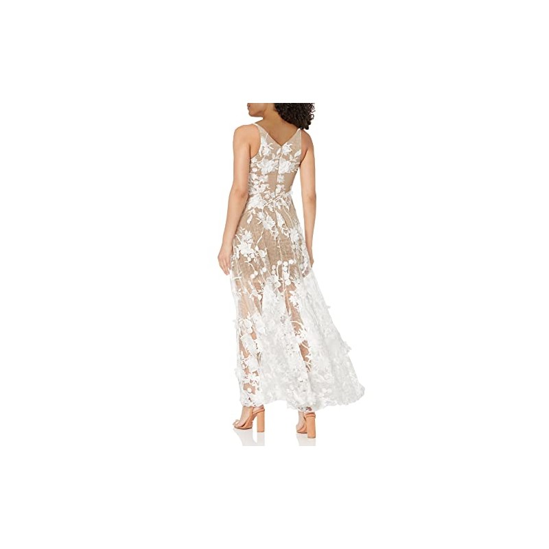 Dress the Population Women's Sidney Sleeveless Plunge Neckline FIT and Flare Maxi Dress, White/Nude, XX-Small