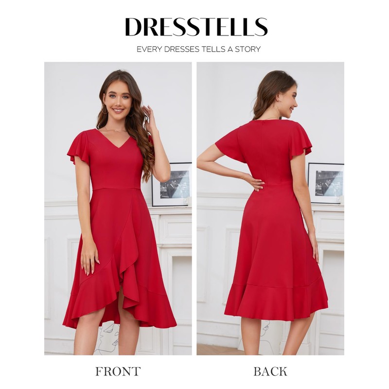 - Cocktail Dresses: Wedding guest elegant Formal Gowns and Evening Dress with wrap hem,v neck ruffle dress, knee length midi flowy dress, A-line prom dresses, mother of the bride dresses, Vintage dress and semi formal dresses for women