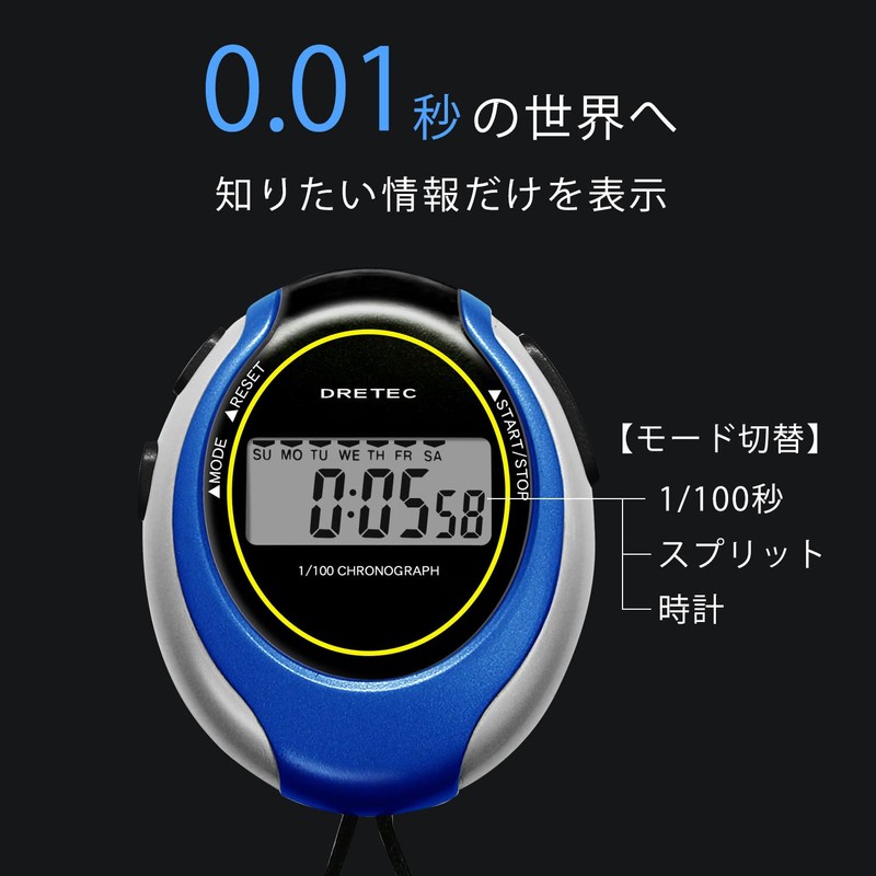 DRETEC(ドリテック) スポーツタイマー 大画面表示 1/100秒ストップウォッチ ブラック SW-109BK