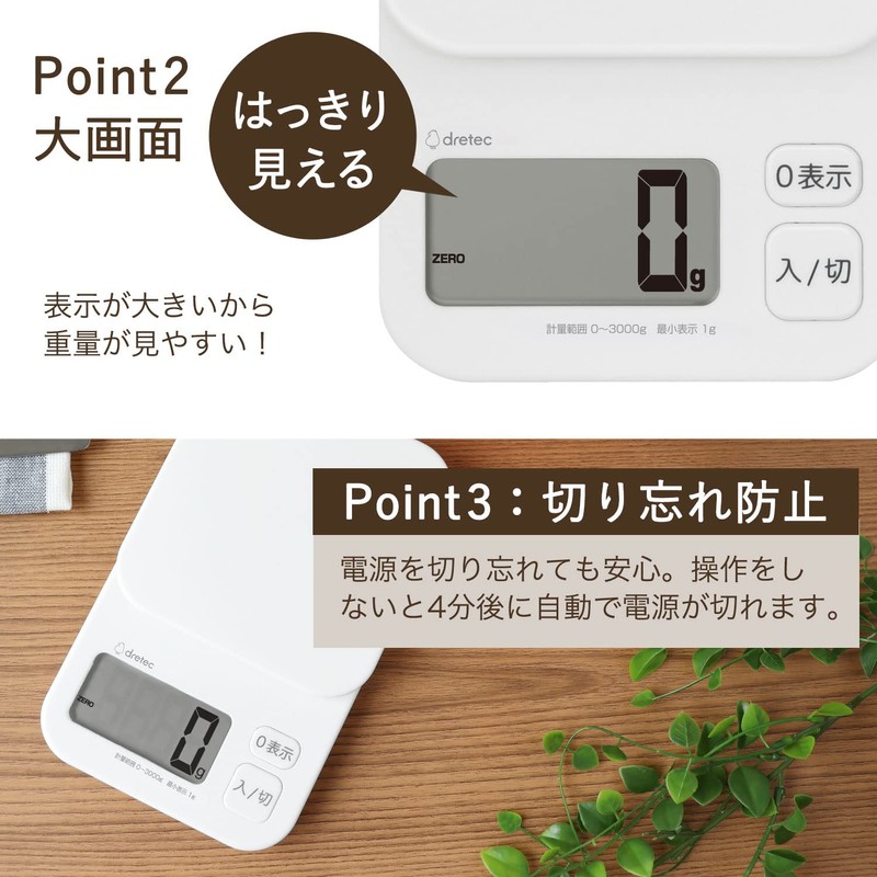 Dretec Kitchen Scale, Digital 6.6 lbs (3 kg), Large Screen, Tare Tower, White
