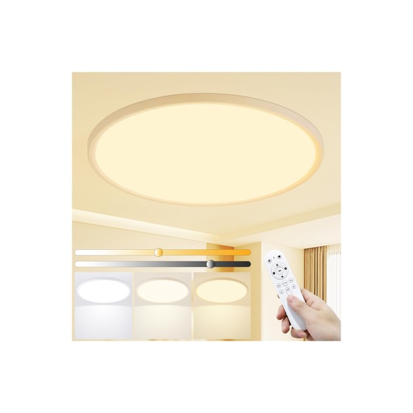 - Flicker-Free & Eye Protection with CRI 90+:Built with high-quality LED chips and a CRI rating of 90+, this flat round ceiling light delivers 4800 lumens of uniform, flicker-free lighting. It offers vibrant, true-to-life colors and helps reduce eye fatigue, especially for children or seniors.