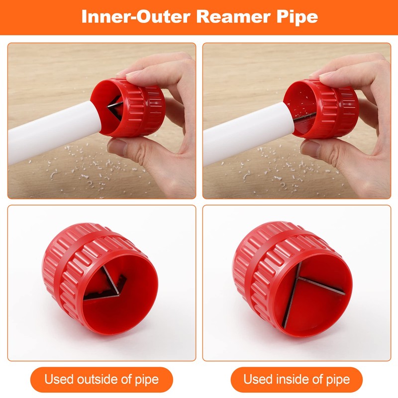 • Deburring Function: the red pipe reamer tool is suitable for use on the inside and outside of the pipe; The deburring tool contains 6 metal blades in a tapered arrangement; This design can file the burrs on the inside and outside of the pipe; It is suitable for 1" to 5/8" pipes; Both clockwise and counterclockwise directions can deburr, which is convenient for pipe installation