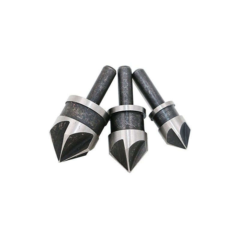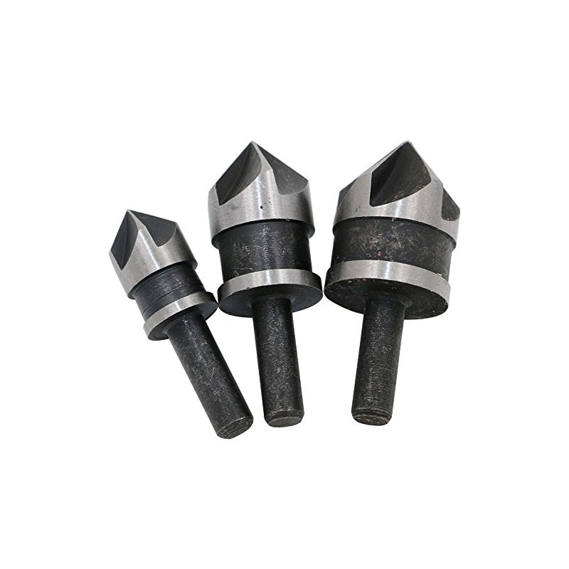 Driak 1/2",5/8",3/4" 5 Flute Chamfering Bit Set Countersink Bit, 82 degree pack of 3