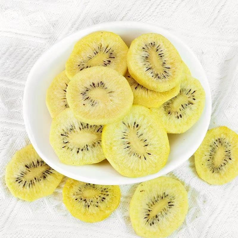 - Choose yellow kiwifruit for production, with high sweetness, delicate and residue free , bringing a sunny tropical flavor. Our sweet sliced dried kiwifruit is a delicious nutritional substitute for fresh fruits. Enjoy its unique flavor in a convenient and snack like form.