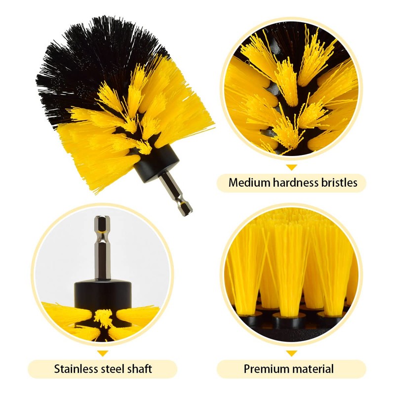 - 【High Quality】The power scrubber drill brush kit contains 3 brushes of different sizes and shapes to fit into most of the cordless drills. The high quality premium bristles with medium stiffness will not scratch your bathtub and shower tile surfaces. The backboard has adopted by the top-grade material of PP to ensure quality level.