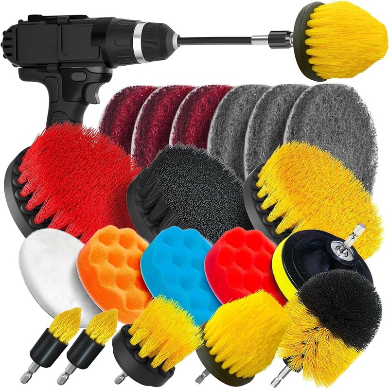 - 【Delivery Contents】You will receive a 20-piece drill cleaning accessory kit and polishing accessory kit that includes 8 shapes of medium drill power scrub brushes, 6 scrubbing pads of varying hardnesses, 3 sponge polishing pads, and 1 white wool polishing pad, as well as a 4-inch liner and an extension rod. (Drill not included)