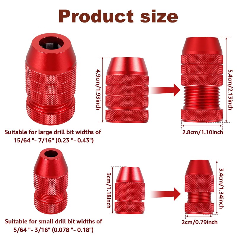 - Adjustable Size There are 2 drill depth stops included which can adjust the inner diameter to accommodate drill bits of different sizes. It is suitable for large diamonds with a width of 15/64 - 7/16 inches (0.23 - 0.43 inches) and for small diamonds with a width of 5/64 - 3/16 inches (0.078 - 0.18 inches)