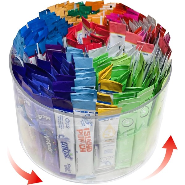 - Multi-purpose rotating organizer : Larger size, more storage space, perfect for organizing your mixed drink packets, energy drink packets, instant coffee packets, tea packets, flavor packets, etc., Keep Your Beverage Packets Neat and Accessible with the Drink Packet and Water Packet Organizer Compact Storage Solution for Home and Office