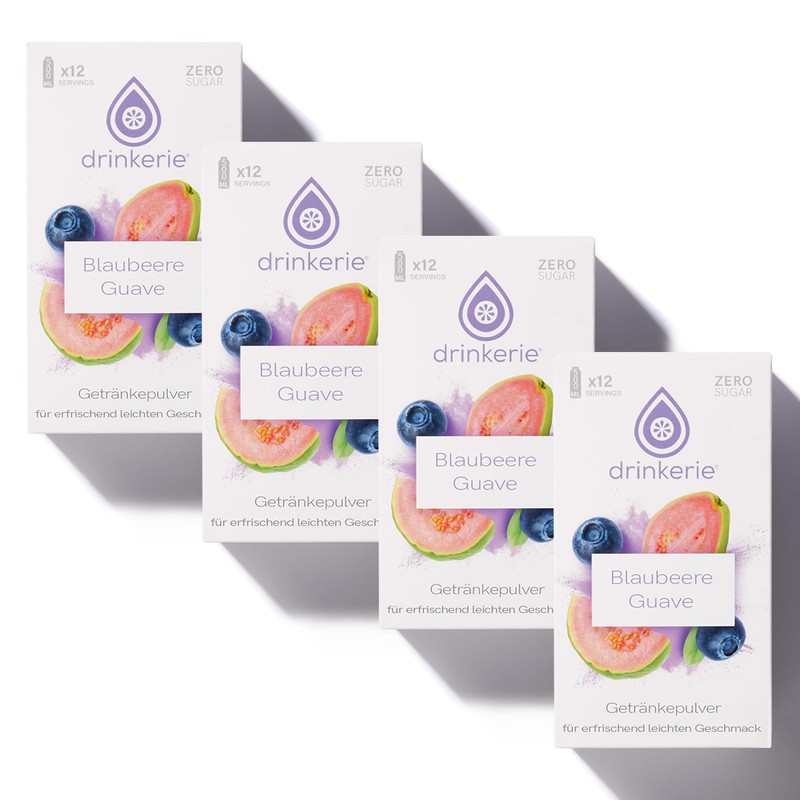 drinkerie drinkerie? Getr?nkepulver Zuckerfrei (4er Pack) - 48 x 500ml erfrischender Trinkgenuss (Blaubeere Guave) - Wasser Geschmack ohne Zucker - 100% plastikfrei - Instant Getr?nkepulver mit Vitamin C