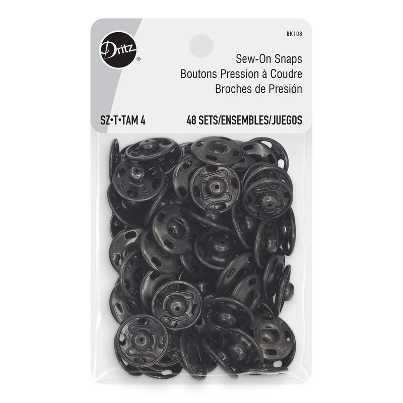 Dritz Sew On Snaps Size 4 Black 48 Sets Fasteners, 48ct