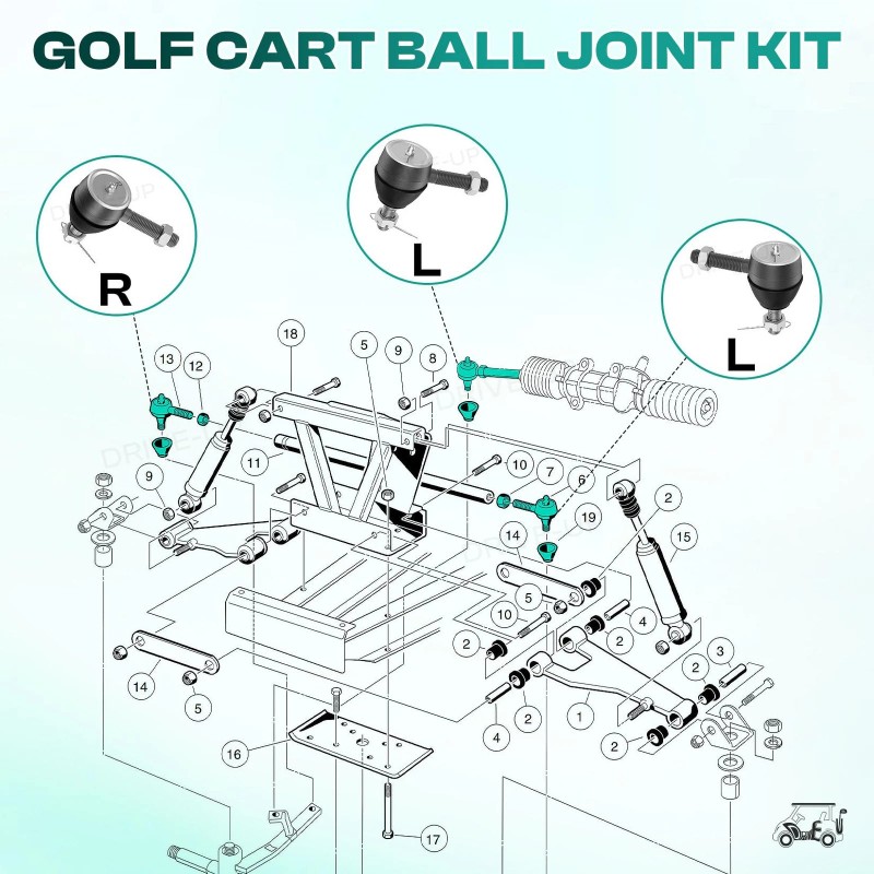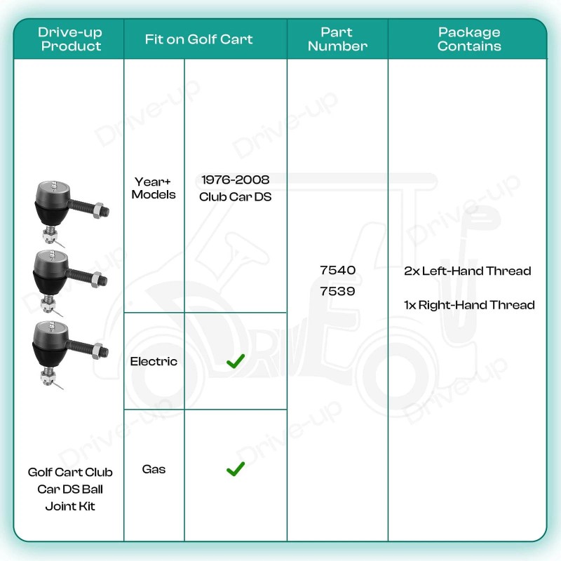 Drive-up Ball Joint Kit,Set of (3) Tie Rod End with grease fitting Fits for Club Car DS