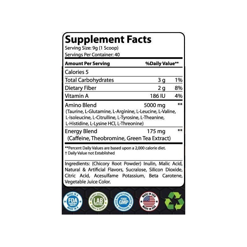 Energized aminos will provide you with a clean energy boost to your busy day, no matter your endeavor, that also helps aid in recovery, and promote muscle building.