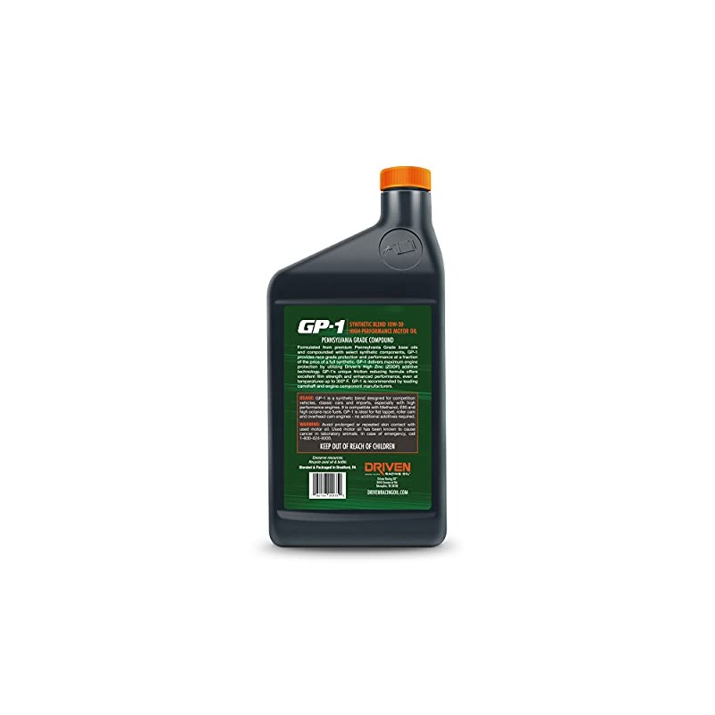 Driven Racing Oil GP-1 Synthetic Blend High Performance Motor Oil 10w-30 (12 Quart Bottles)