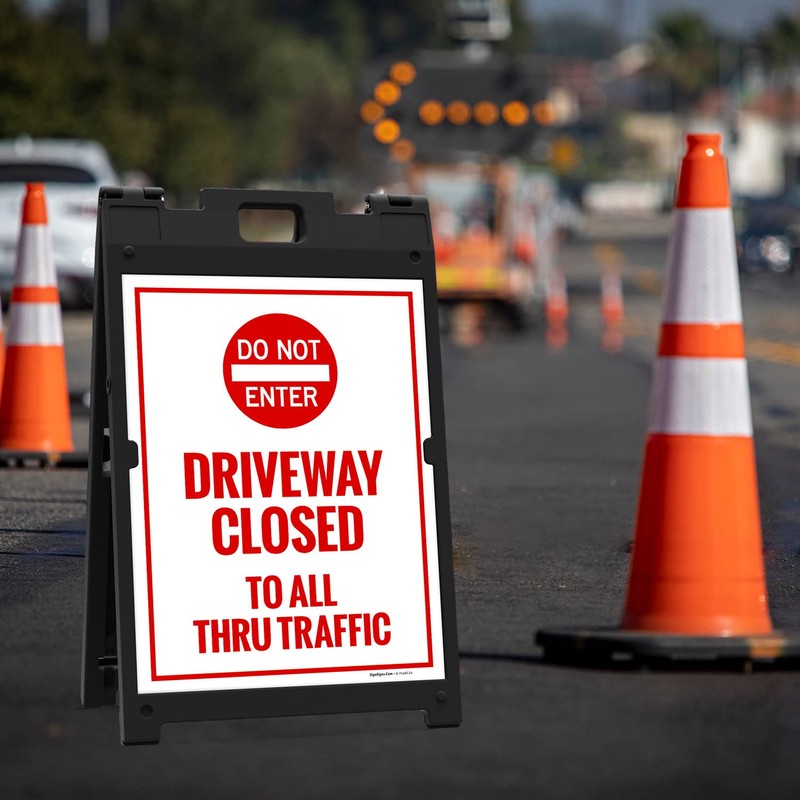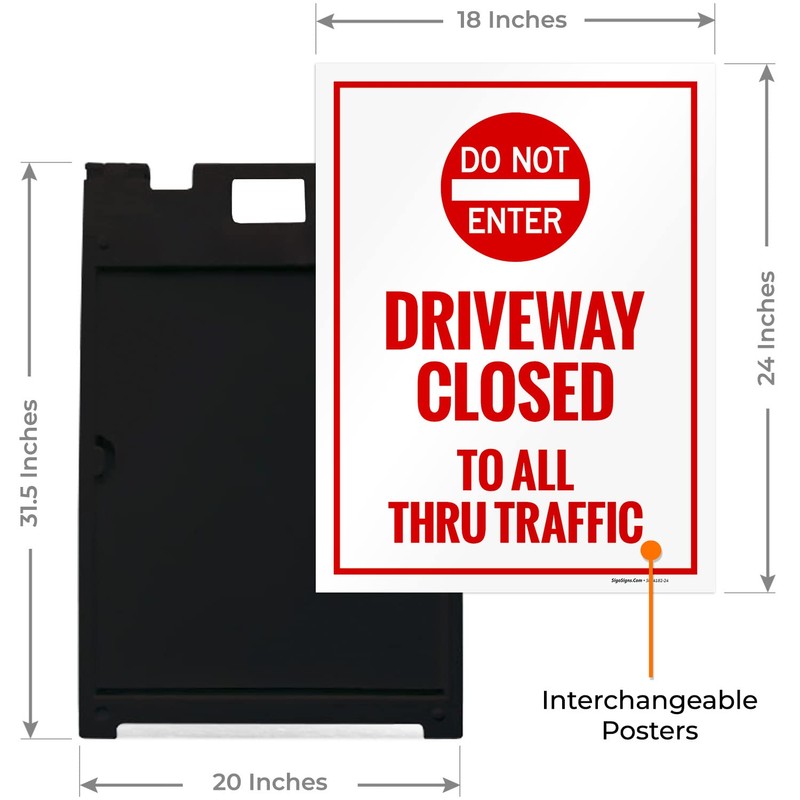 Driveway Closed To All Thru Traffic With Do Not Enter Graphic Sidewalk Sign Kit, 18x24 Inches, With A Frame Stand, Made in USA by Sigo Signs
