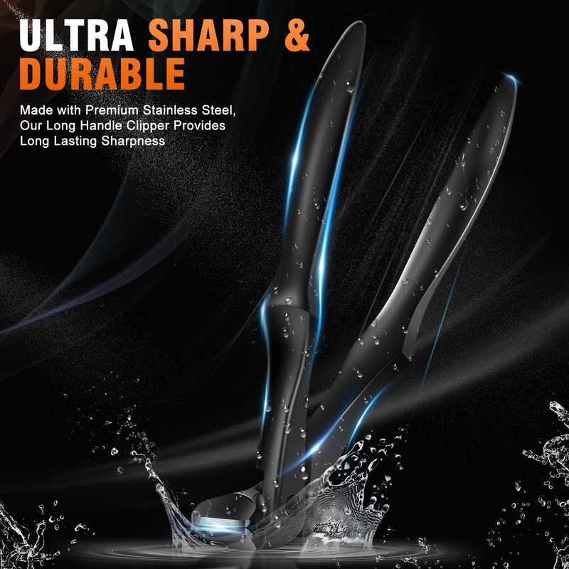 - UPGRADED LONG HANDLE - Mens nail clippers handle adopts a unique lever principle, and the 4.5-inch non-slip long handle provides a perfect combination of comfort and control, greatly reducing the pressure required when cutting nails, allowing you to cut hard and thick nails effortlessly.