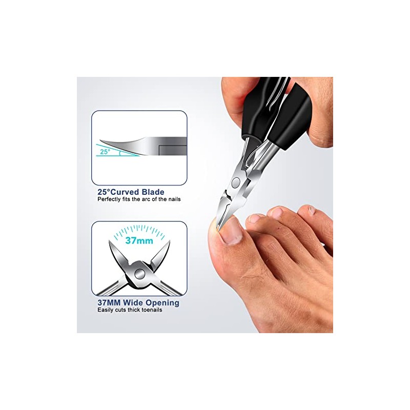 - Precision nail clippers set: our nail clippers are designed for toenails ingrown and thick toenails. The 25 degree curved blade perfectly fits the arch of the nail, cuts the ingrown nails and sharp tips at the corners without hurting the nails. The sharp blade and 20mm rim penetrate deep into the groove to easily cut thick, ingrown toenails
