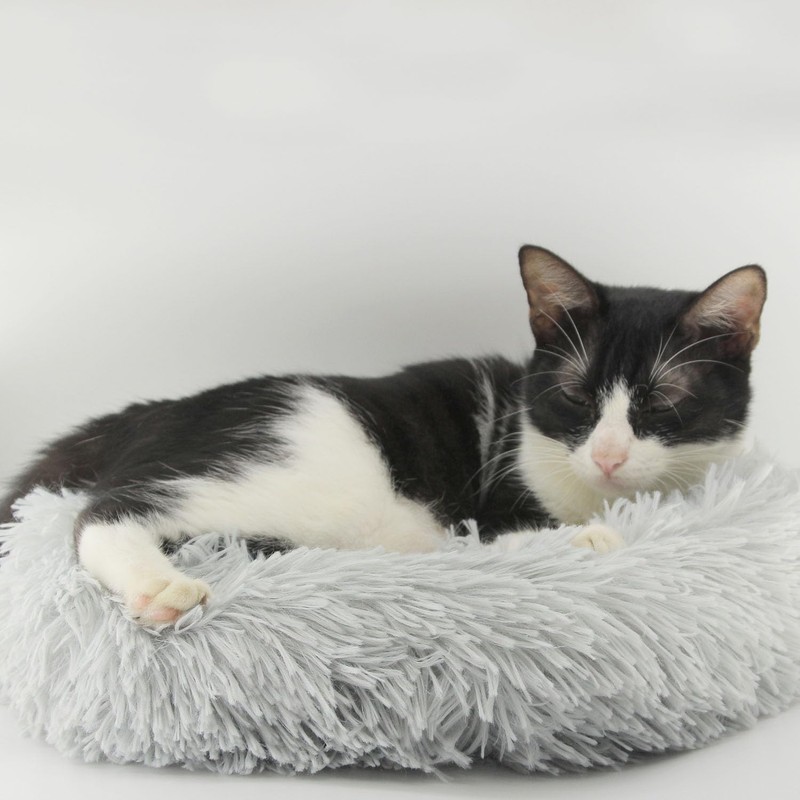 Drotayard 38 cm Cat Bed, Doughnut Bed for Deep Sleeping Nest, Pet Nest Beds, Fluffy Round Cuddly Bed Made of Plush for Puppies and Kittens, Warm and Soft Pet Bed with Non-Slip (Grey)