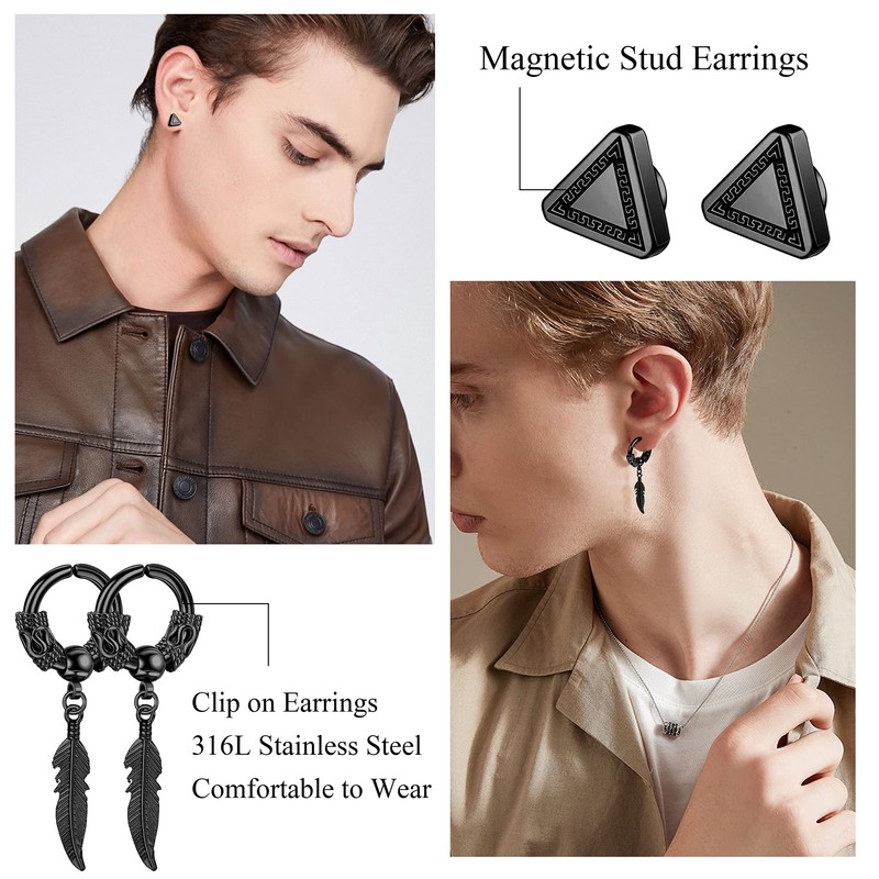 - 🗡️MATERIAL: Our mens clip on earrings made of 316L stainless steel, nickel free and lead free, high polished surface, exquisite plating process, lightweight and comfortable to wear.
