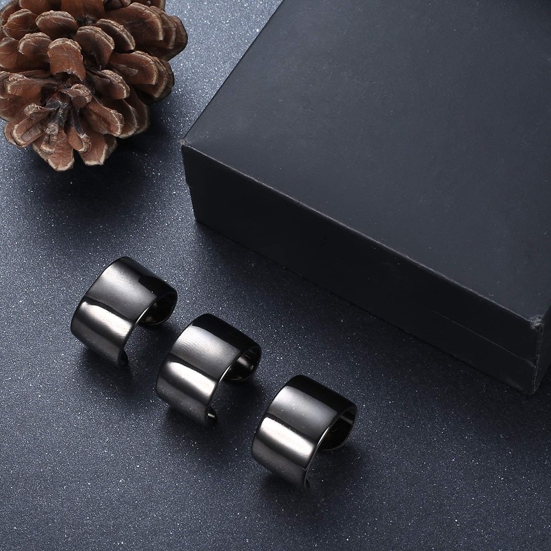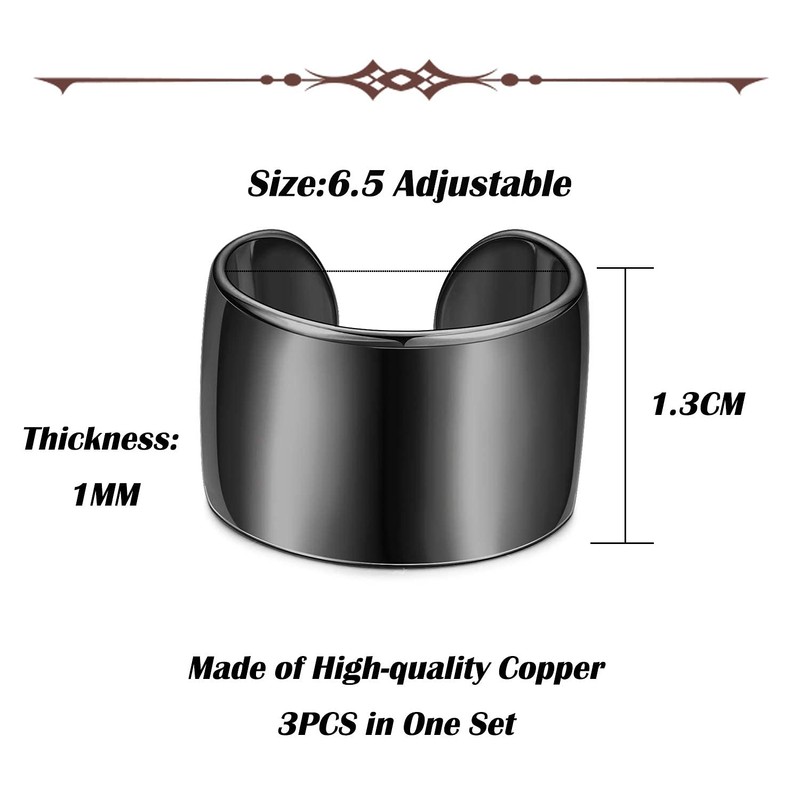 Drperfect 3PCS Adjustable Band Rings for Women Men Open Cuff Knuckle Rings Flat Plain Wide Band Ring Set