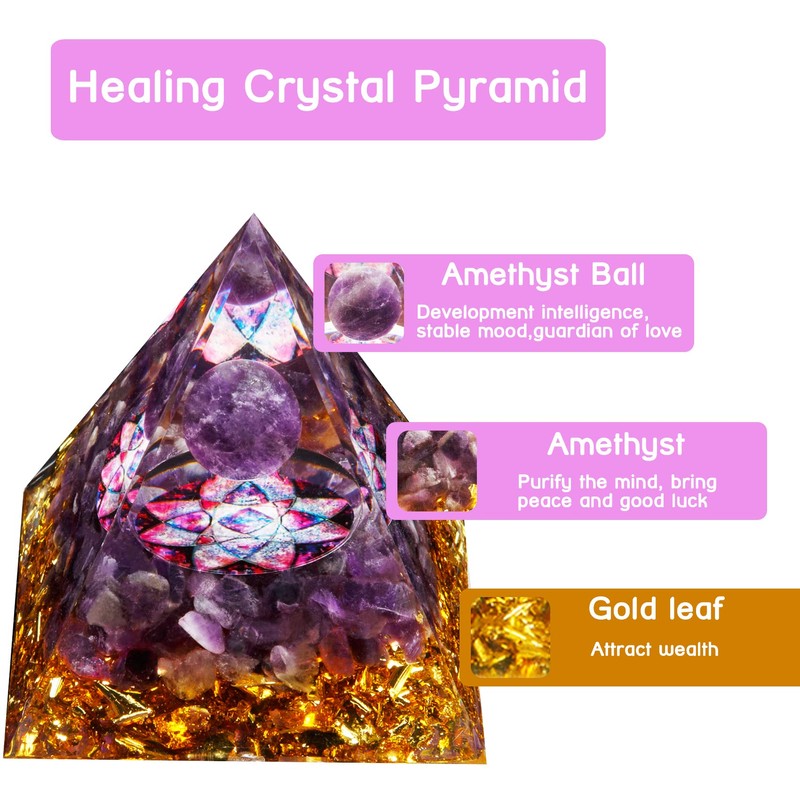 DRTMLY Orgone Crystal Pyramid, Small Orgonite Pyramid Porstive Energy Generator, Healing Crystal Pyramid for Resist Stress, Bring Good Luck and Wealth (Amethyst)