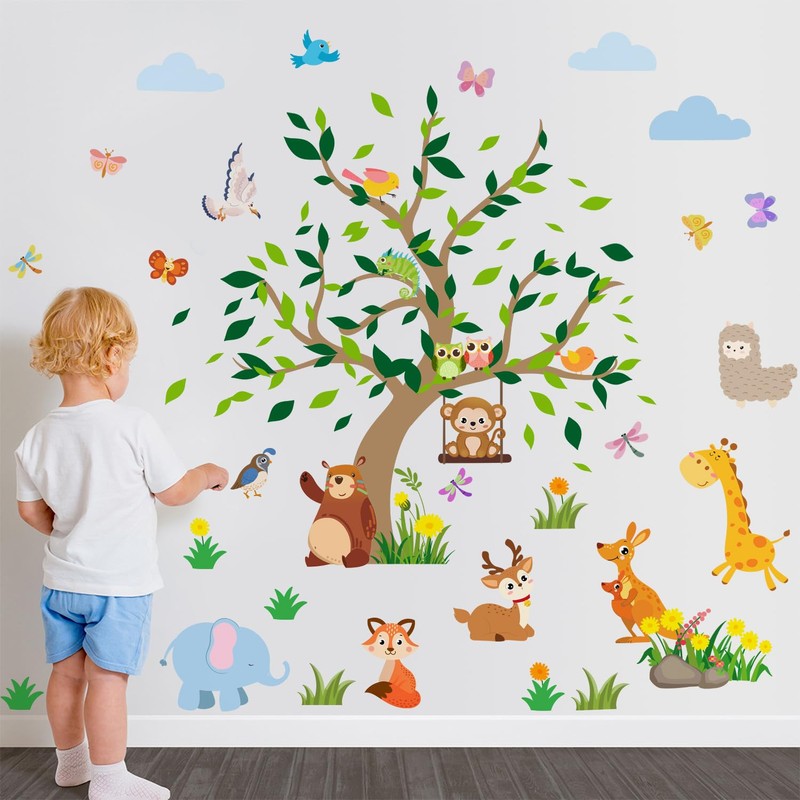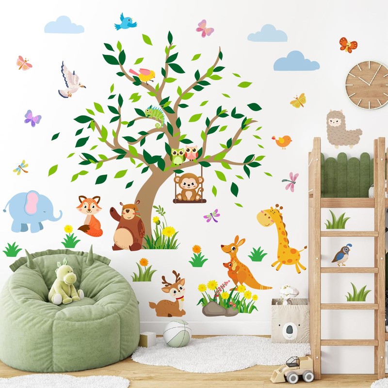 - Nice gift: This watercolor style Jungle Animals wall sticker is perfect for giving to kids, friends, loved ones, etc. to refresh the room and create a warm and fun atmosphere.You can give full play to your creativity as well as use these tree animals wall decals for inspiration and enjoy with your kids or friends.